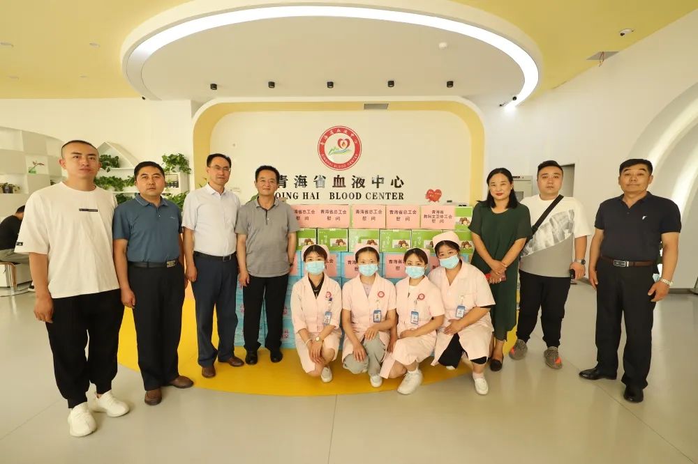 7月14日,省总工会二级巡视员白海青、省科教文卫体工会主席央毛一行在省血液中心领导和工会工作人员的陪同下,带着一份份夏日的清凉爱心,来到了西宁市莫家街爱心献血屋,在炎炎夏日中为奋战在一线的工作人员和广大爱心市民送去了一份“清凉”和关怀,传达了工会组织对一线职工的关怀和慰问。