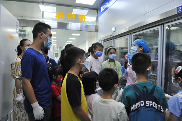 随后,血站讲解员带领着孩子们到工作现场实地探索血液的奥秘,以贴合实际、浅显易懂的讲解形式普及血液和无偿献血的相关知识。从血液采集、血液检测、血液制备到血液储存,他们了解了血液从献血者身上采集到用于临床,需要经过的一道道工序,解开了心中问号的同时,对爱心的传递和生命的接力有了更深的体会,纷纷表示此次血站之旅让他们受益匪浅。他们说:“血液太神奇了,长大后我也要献血!”