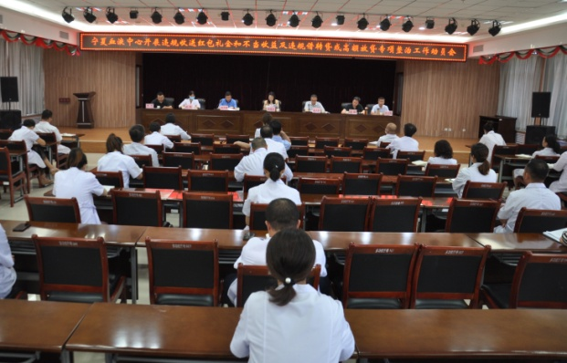 7月29日上午,宁夏血液中心召开开展违规收送红包礼金和不当收益及违规借转贷或高额放贷专项整治工作启动会。中心领导、副科级以上中层干部和关键岗位职工参加了会议。自治区卫生健康委专项整治工作第三指导小组副组长、宣传与健康促进处孙艳芳处长到会指导。