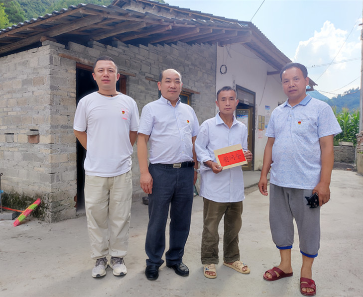为助力乡村振兴,推动党史学习教育常态化长效化,推进“双联双促”活动深入开展,2022年8月1日,贵州省血液中心党委书记朱思刚、党委委员、副主任郑祥顺一行,赴三穗县良上镇贵槐村宣讲省第十三次党代会精神,开展乡村振兴“双联双促”帮扶慰问活动。