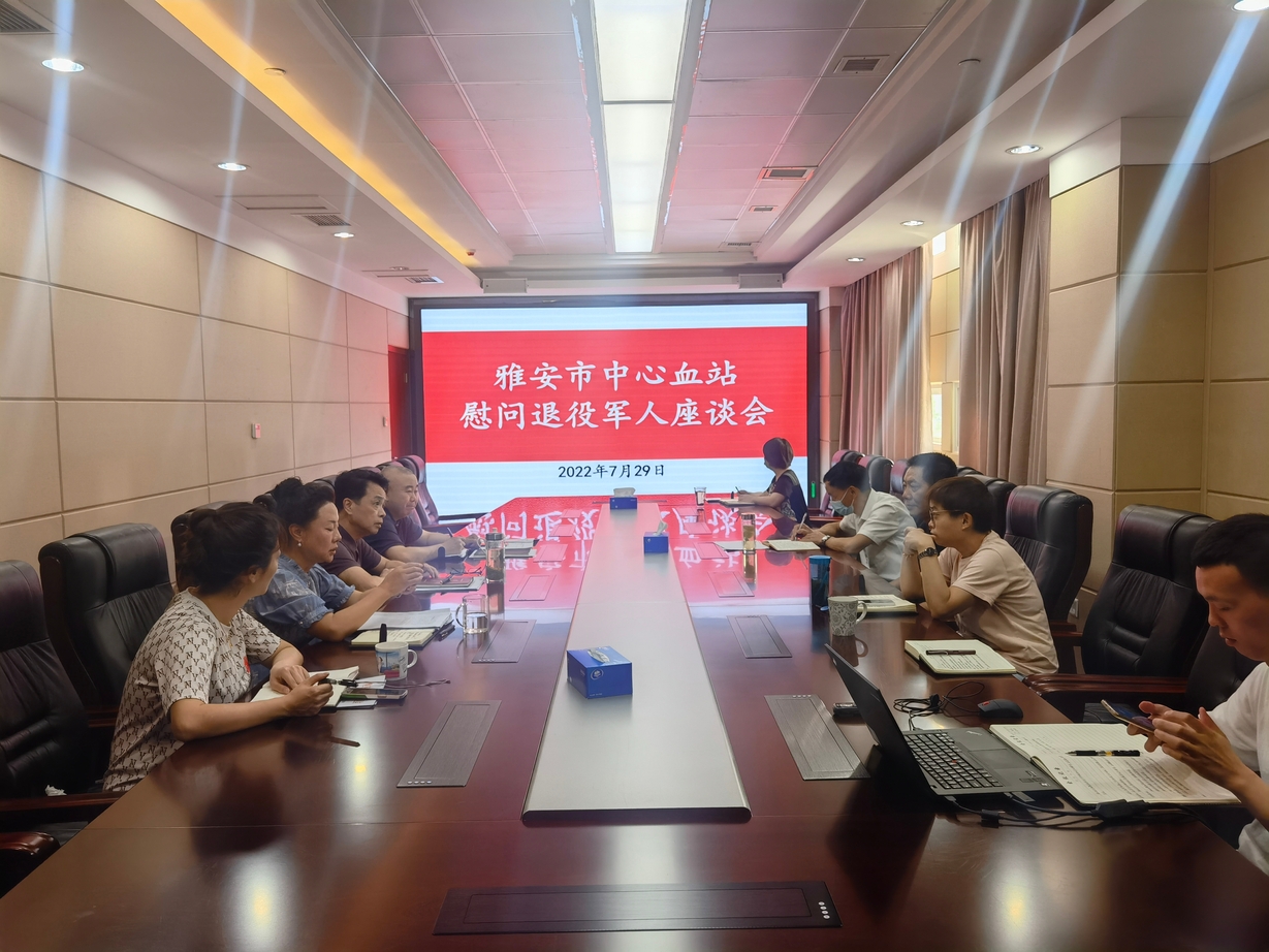 在中国人民解放军建军95周年来临之际,为弘扬爱国拥军的优良传统,表达对退役军人的关怀和问候,7月29日上午,雅安市中心血站召开了慰问退役军人座谈会并深入开展了拥军优属活动。