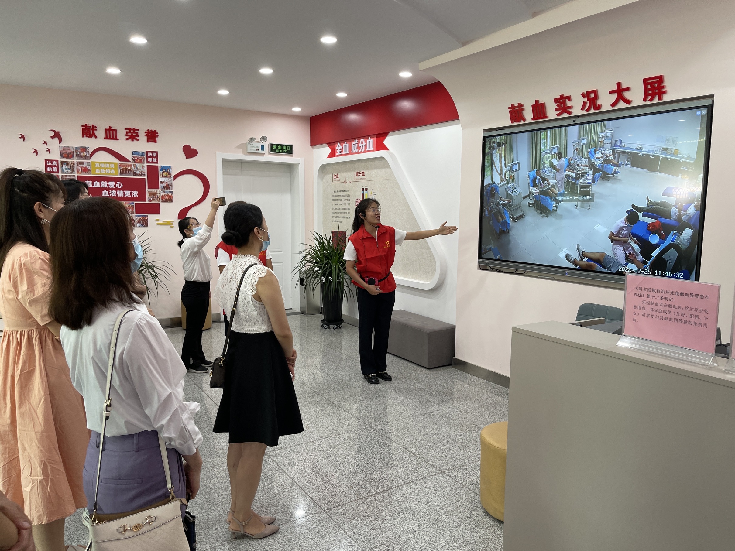 互观互学小组参观了我站新建成的无偿献血科普教育基地、体验了无偿献血具体流程、听取了州中心血站党支部的党建特色品牌建设情况。