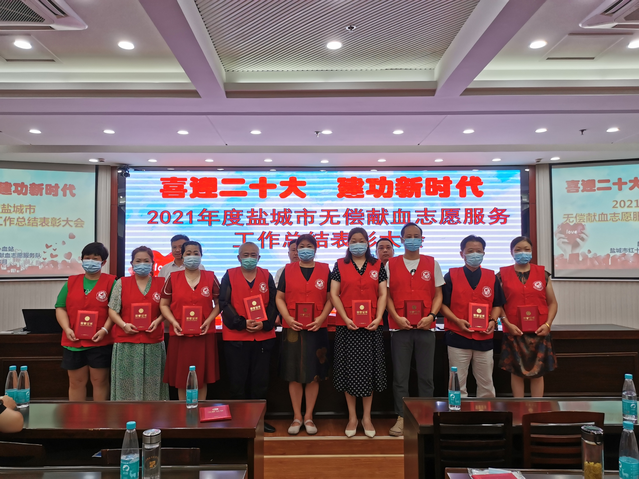 8月7日,2021年度盐城市无偿献血志愿服务工作总结表彰大会暨2022年志愿者培训班在盐城市中心血站九楼会议室召开。来自市区各行各业的无偿献血志愿者代表50人参加了会议。盐城市红十字会无偿献血志愿服务队队长陆仁平主持会议。