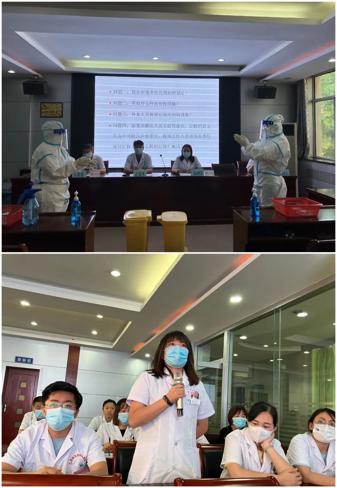 王蒙海站长在总结讲话中强调,全站职工一定要进一步增强风险意识和责任意识,深刻认识疫情防控工作的重要性和长期性,严密关注疫情发展动态,及时更新完善各项防控措施和应急指挥体系,同时不断强化人员技能培训,使每一位职工熟悉掌握疫情防控相关处置流程,能够及时应对熟练操作,补齐短板弱项,保证在紧急状况下,能够高效及时、科学合理地进行规范处置,确保采供血工作的平稳有序运行。